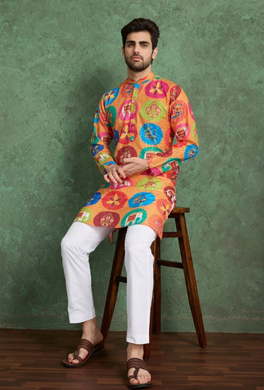 Matrut | Kurta Kraft Orange Multicolor Kurta Set