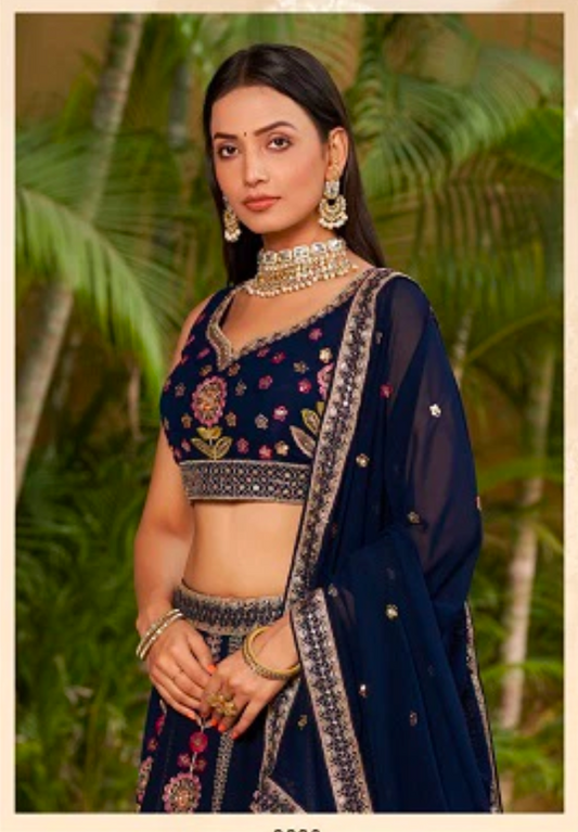 Price dropMatrut | Golden Palm Navy Blue Lehenga
