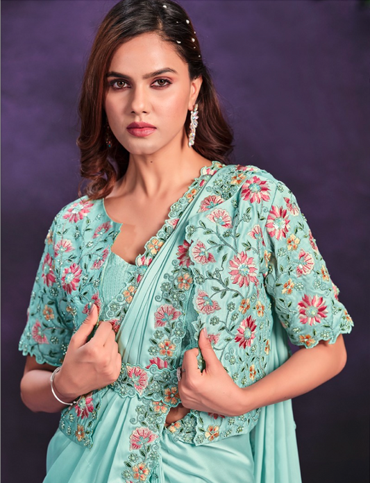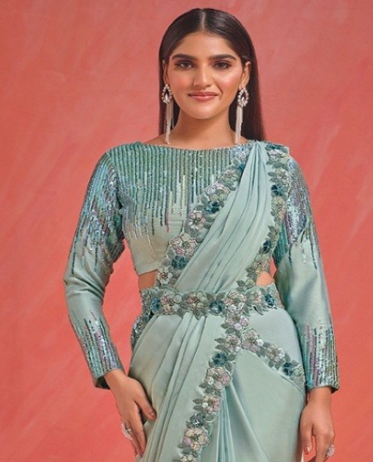 Price dropMatrut | 1 min Saree Sky Blue Riona