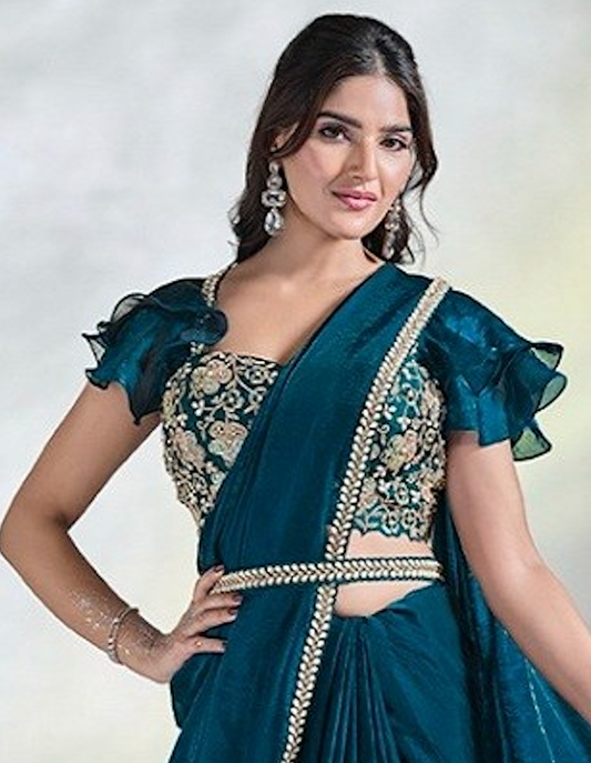 Price dropMatrut | 1 min Saree Teal Blue Fab