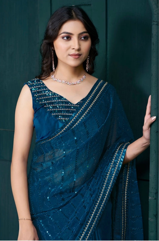 Price dropMatrut | Kishmish Indigo Silk Saree