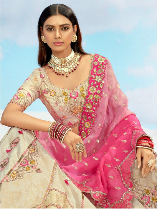 Price dropMatrut | Mithaas Cream Lehenga Set