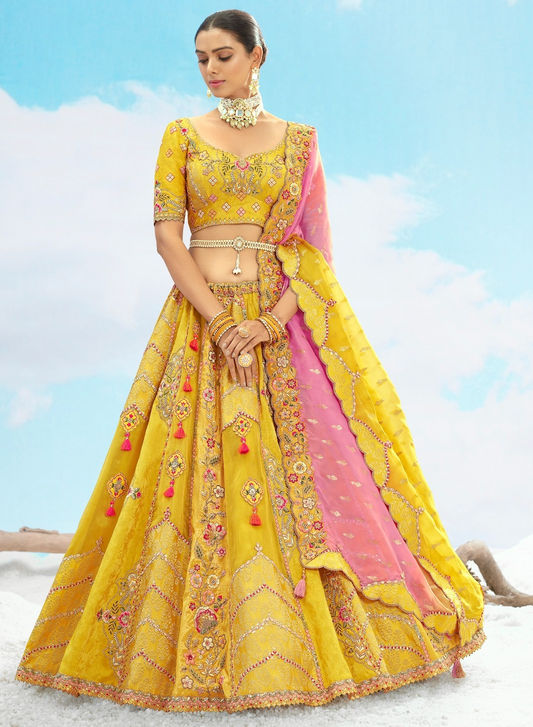 Price dropMatrut | Mithaas Yellow Lehenga Set