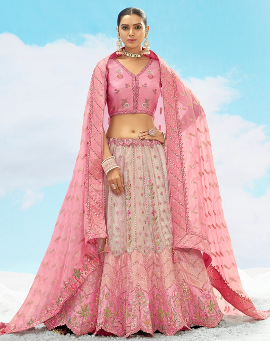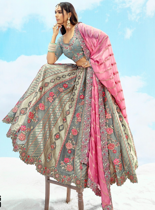 Price dropMatrut | Mithaas Grey Pink Lehenga Set