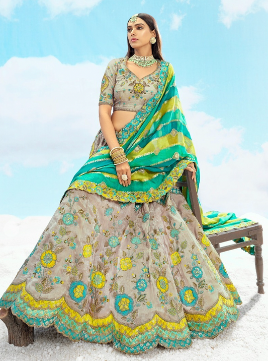 Price dropMatrut | Mithaas Grey Green Lehenga Set