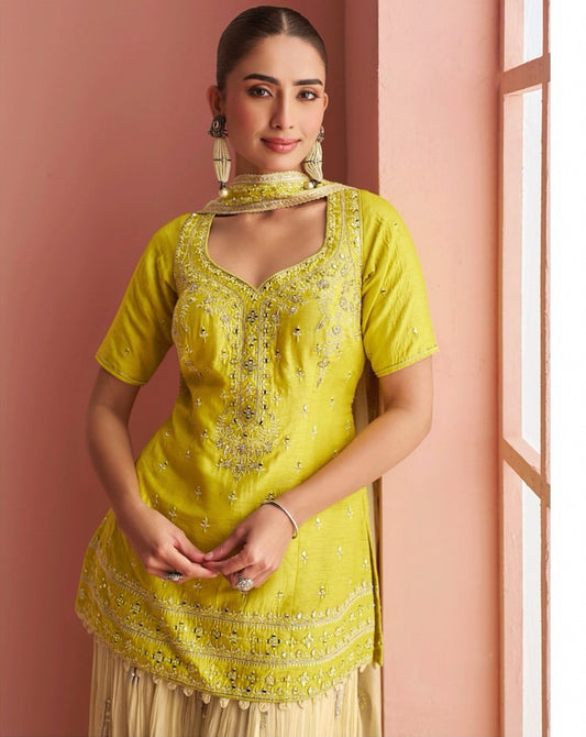 Matrut | Barkha Fluorescent Yellow Palazzo Suit