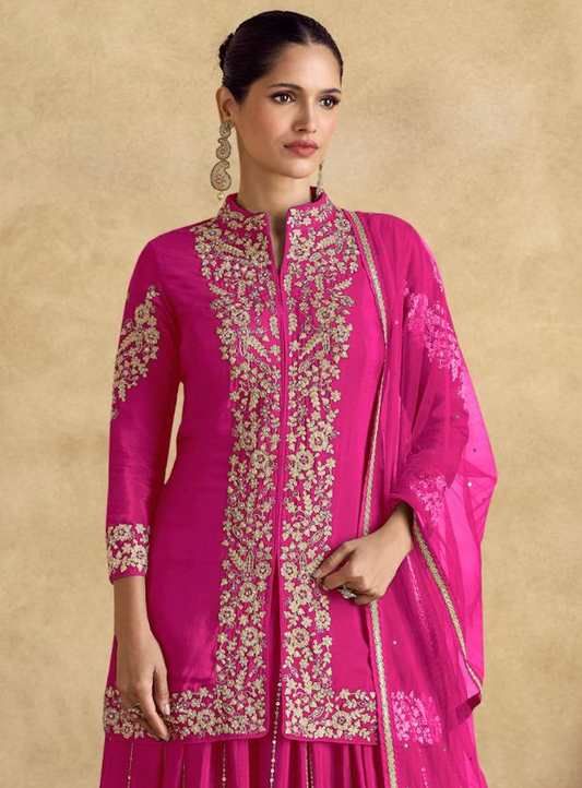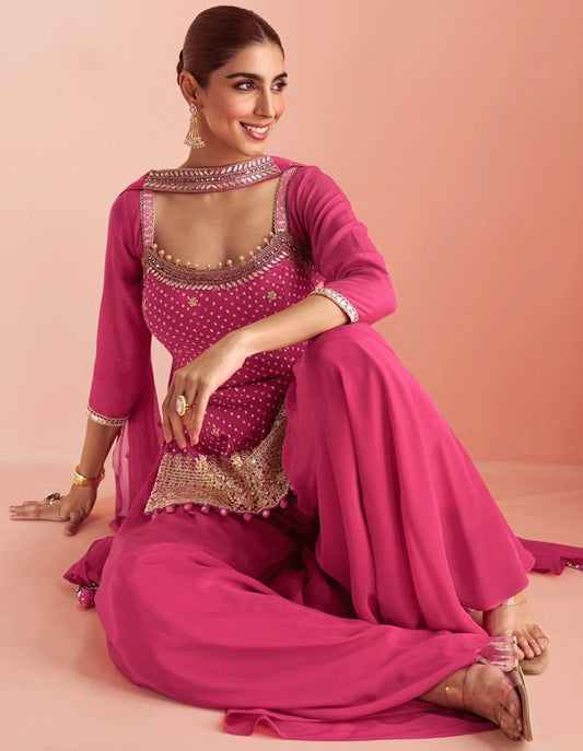 Price dropMatrut | Blanc Aura Hot Pink Sharara Suit
