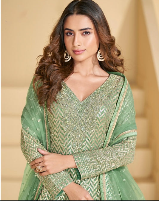 Price dropMatrut | Anokhi Pista Green Palazzo Suit