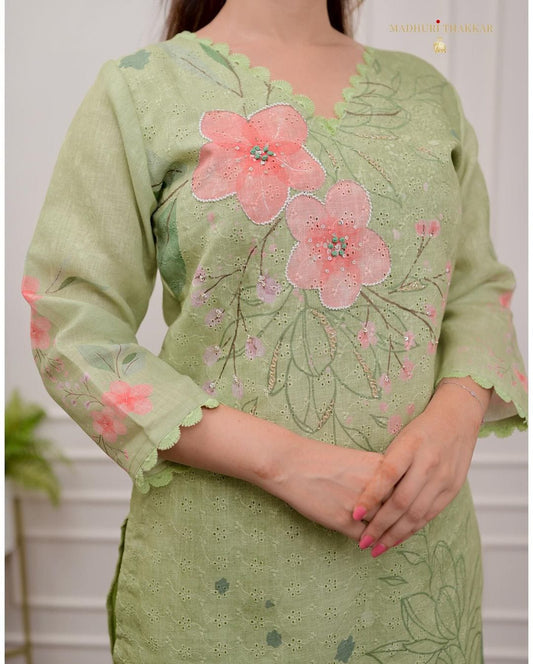 Matrut | Blossom Grace Pista Green Straight Suit