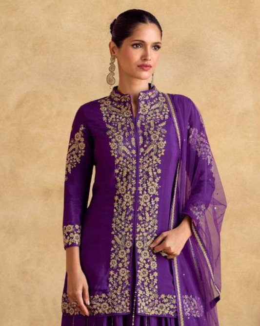 Price dropMatrut | Blanc Aura Purple Sharara Suit