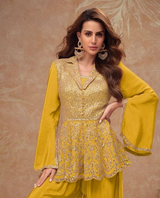 Price dropMatrut | Bollywood Belle Yellow Palazzo Set