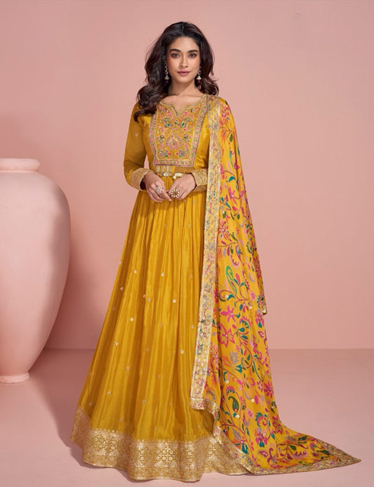 On rent - FULL SET | Mango Masti Yellow Floral Gown