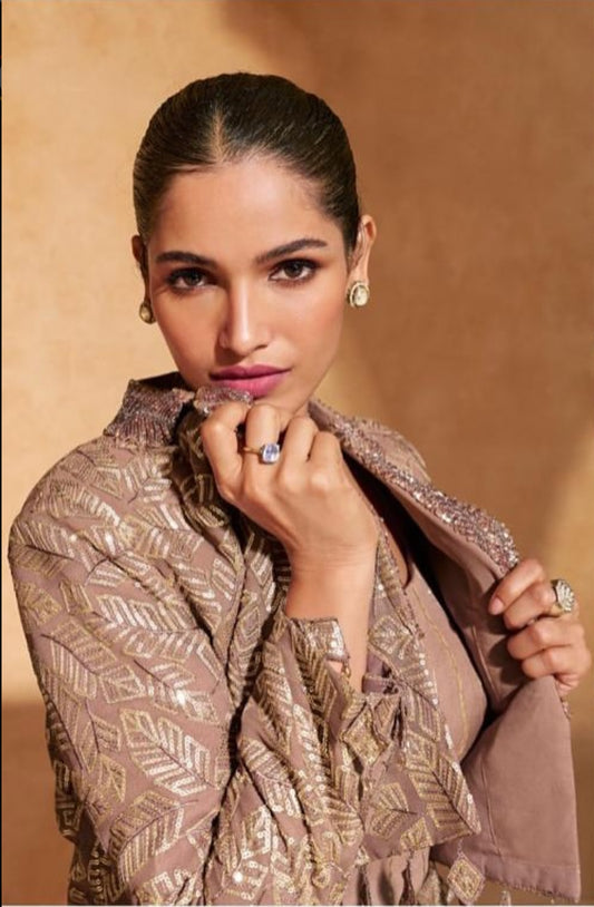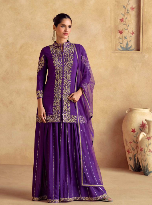 On rent - FULL SET | Blanc Aura Purple Sharara Suit