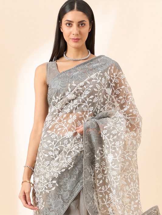 Price dropMatrut | Ziva Grey Saree