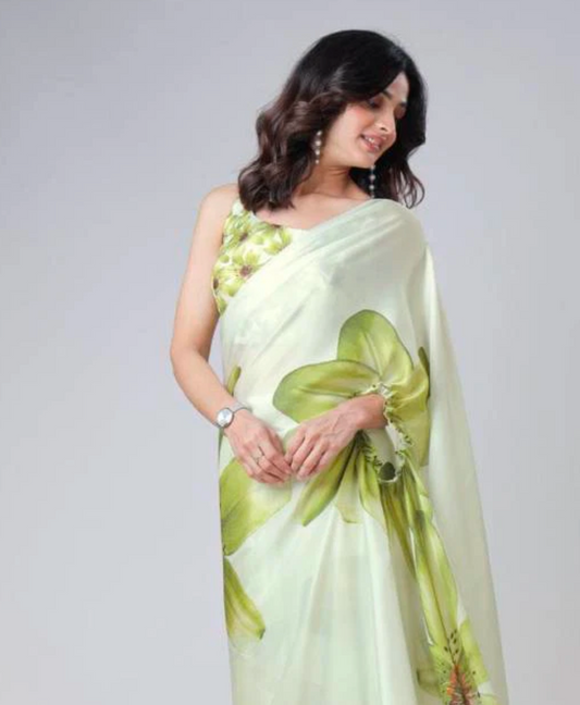 Price dropMatrut | Bubbly Sea Green Freehand Saree