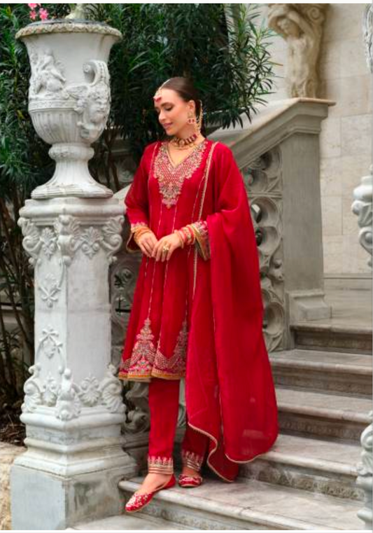 Price dropMatrut | Karwa Rusty Red Anarkali Suit