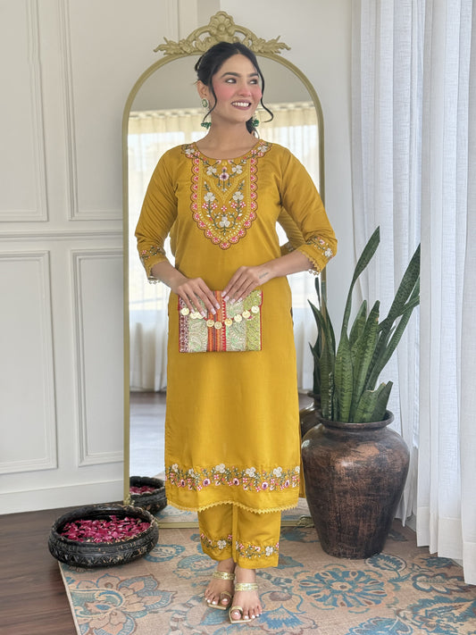 Out of stockMatrut | Krupa Yellow Straight Suit