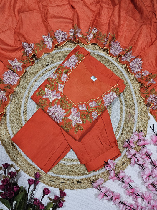 Price dropMatrut | Lakira Orange Anarkali Suit