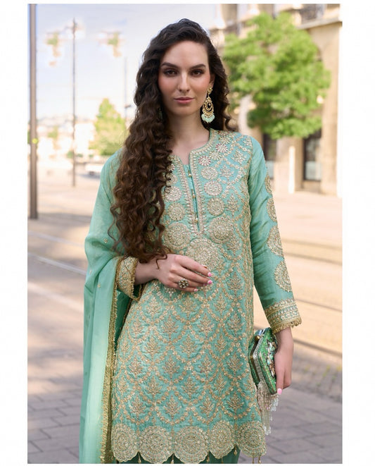 Out of stockMatrut | Mumtaz Mint Green Palazzo Suit