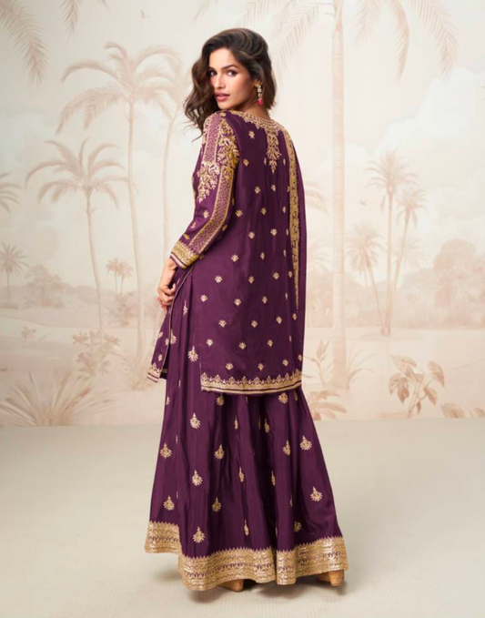 Price dropMatrut | Mumtaz Wine Sharara Suit