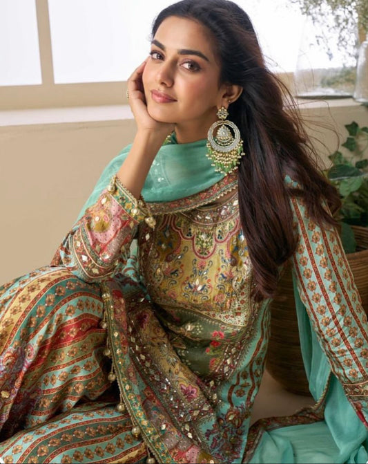 Price dropMatrut | Pakeeza Sea Blue Sharara Suit