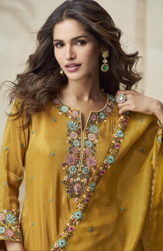 Price dropMatrut | Raktima Floral Mustard Sharara Suit