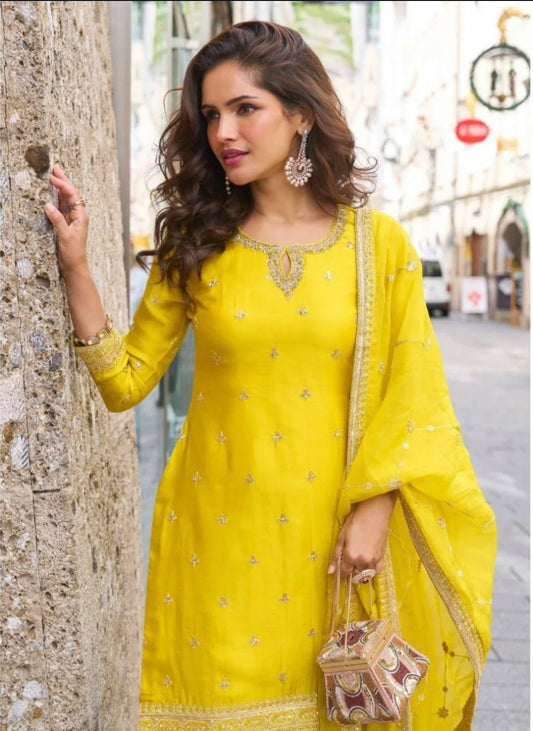 Price dropMatrut | Rashmika Yellow Sharara Suit