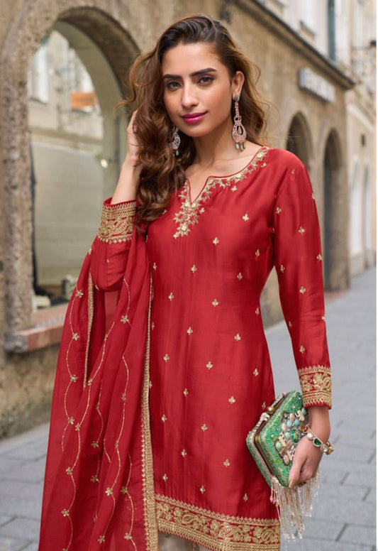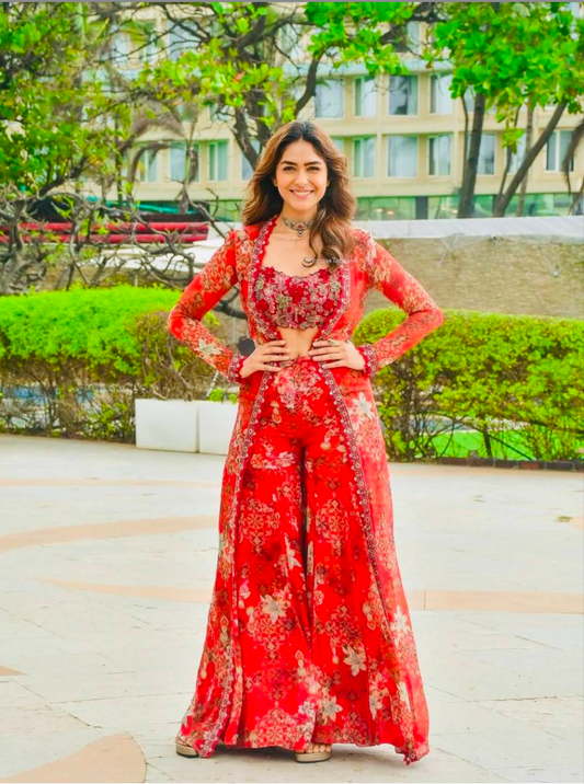 Price dropMatrut | Rashmika Cherry Red Sharara Suit