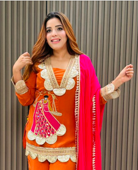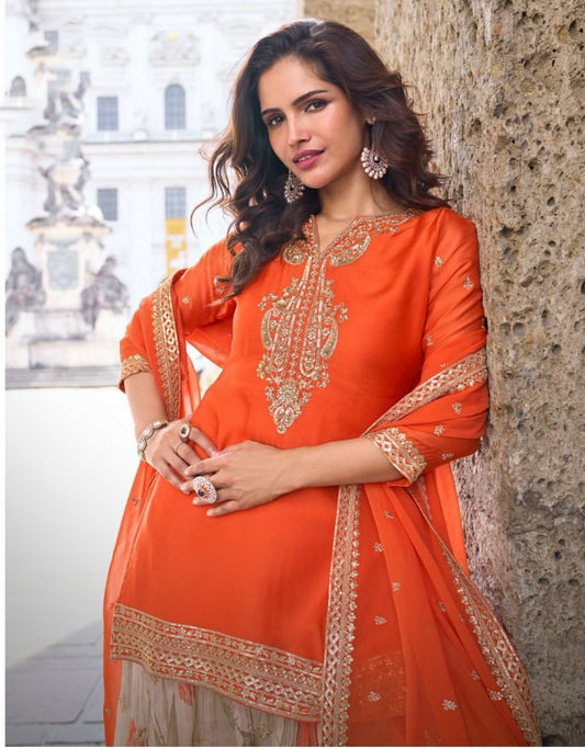Price dropMatrut | Resham Kraft Orange Palazzo Suit