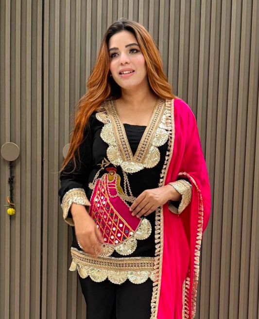 Price dropMatrut | Resham Kraft Black Palazzo Suit