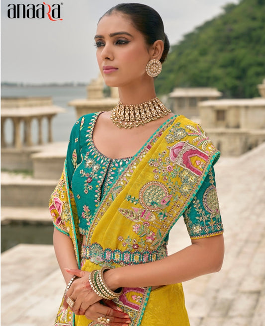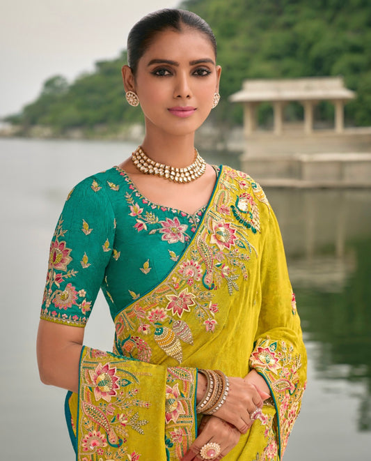 Price dropMatrut | Crown Weaves Mustard-Ferozi Saree