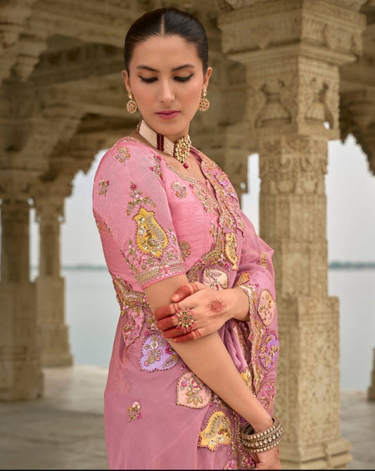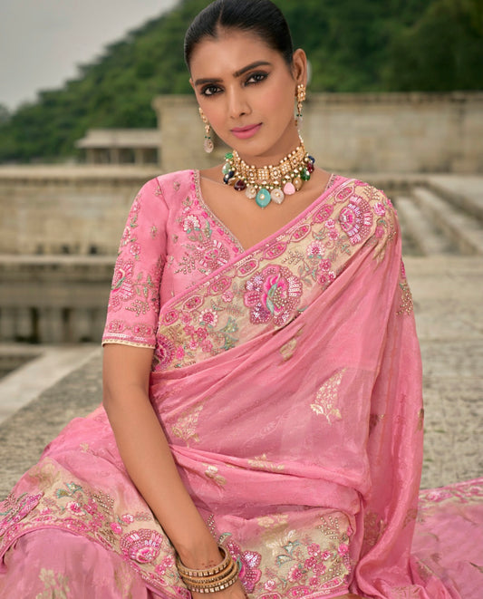 Price dropMatrut | Crown Weaves Powder Pink Saree