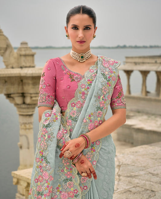 Price dropMatrut | Crown Weaves Powder Blue Saree