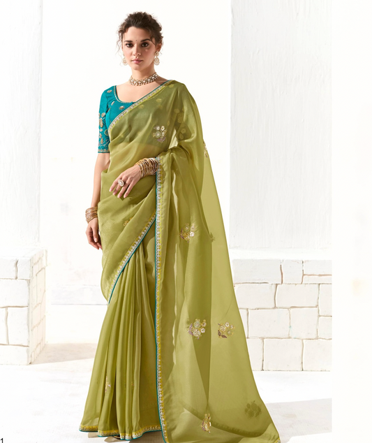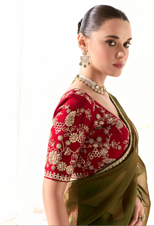 Price dropMatrut | Cherry Chant Olive Green Saree