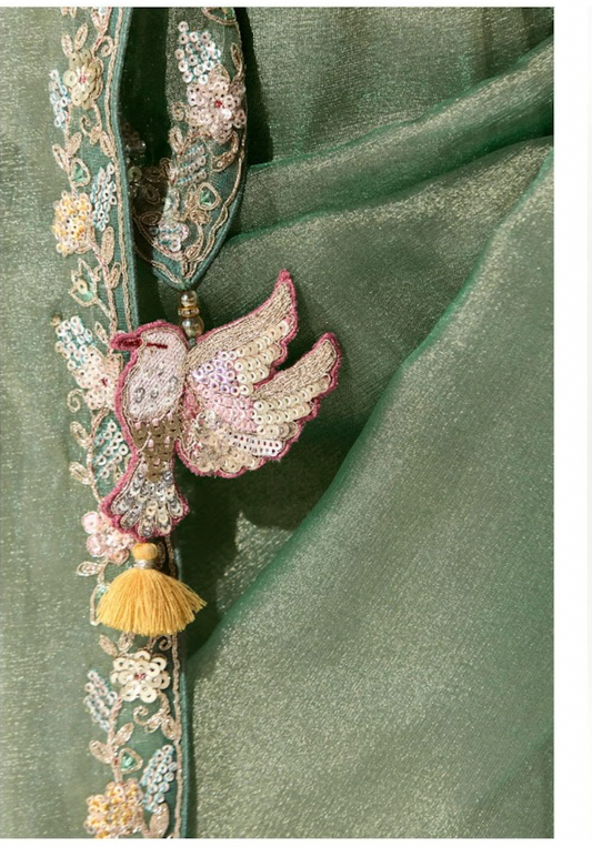 Price dropMatrut | Cherry Chant Pista Green Saree