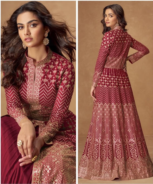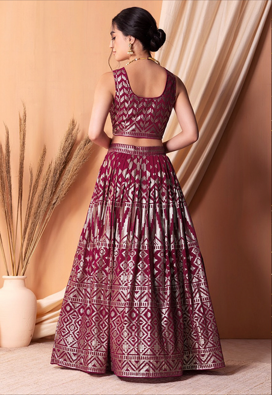 Price dropMatrut | Amber Blaze Wine Lehenga