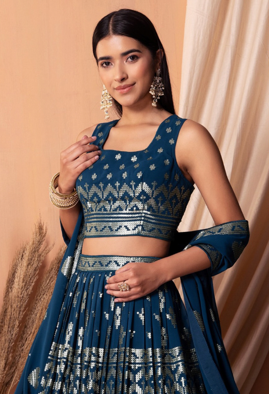 Price dropMatrut | Amber Blaze Teal Blue Lehenga