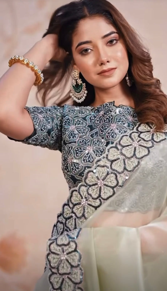 Price dropMatrut | Eira Floral Grey Saree