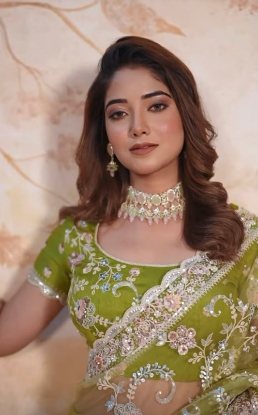 Price dropMatrut | Dolce Dip Pista Green Saree