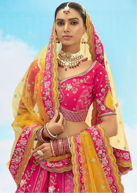 Price dropMatrut | Ehsaas Pink Yellow Lehenga Set