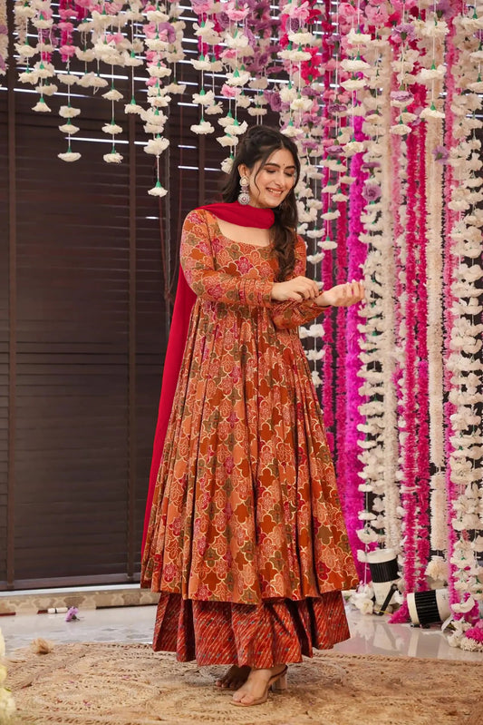 Price dropMatrut | Prakrati Brown Anarkali Suit