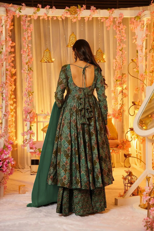Price dropMatrut | Pehchan Bottle Green Anarkali Suit