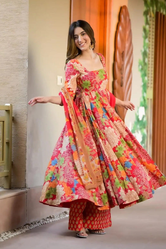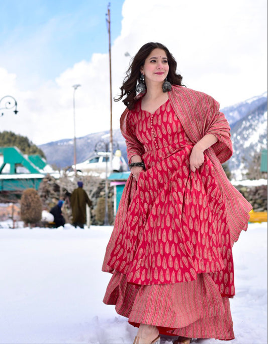 Price dropMatrut | Prnali Cherry Red Anarkali Suit