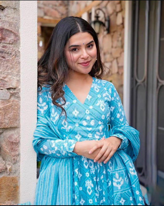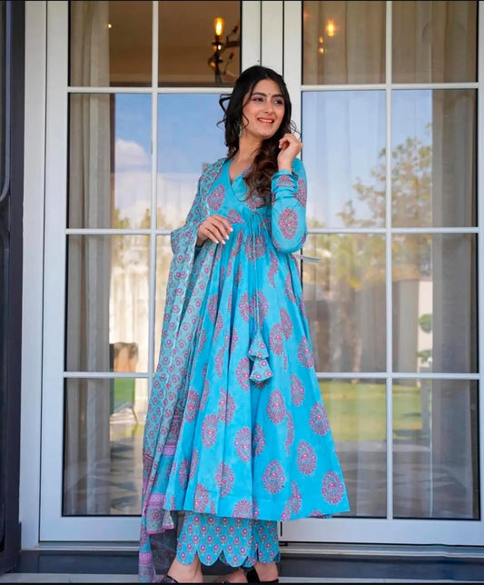 Price dropMatrut | Prakrati Blue Pink Anarkali Suit