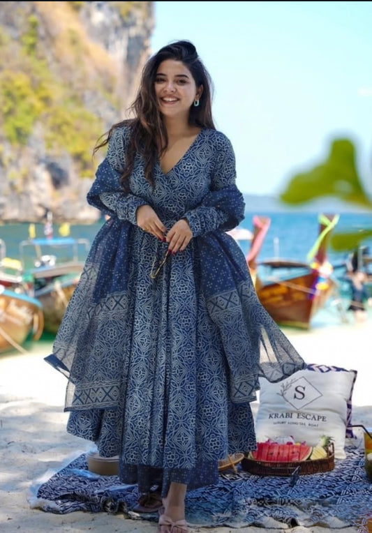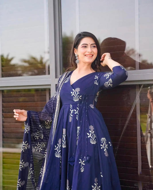Price dropMatrut | Prakrati Dark Blue Anarkali Suit