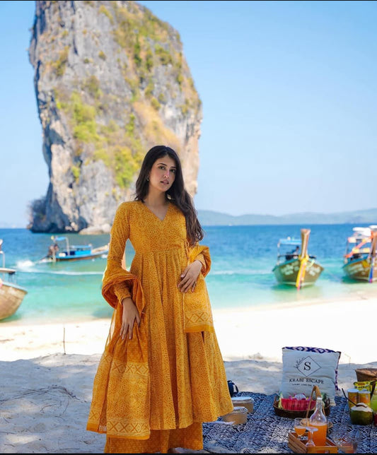 Price dropMatrut | Prakrati Yellow Anarkali Suit