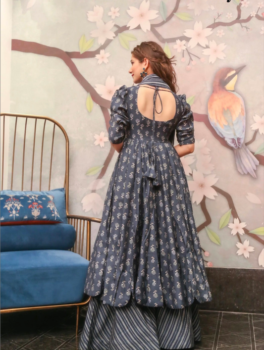 Price dropMatrut | Mithi Grey Anarkali Suit