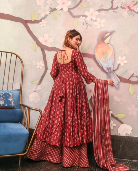 Price dropMatrut | Sthir Maroon Anarkali Suit