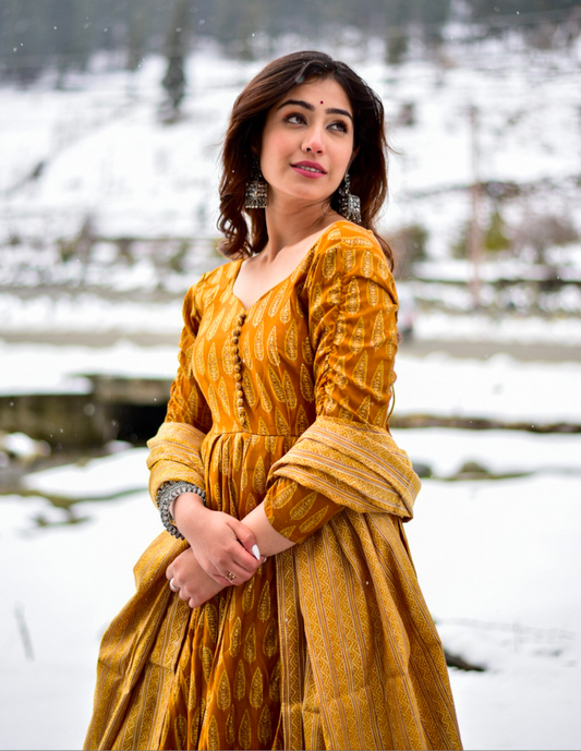 Price dropMatrut | Mithi Mustard Anarkali Suit