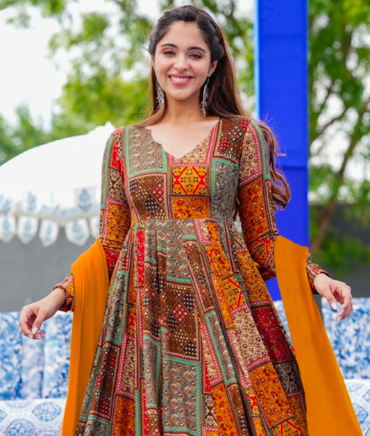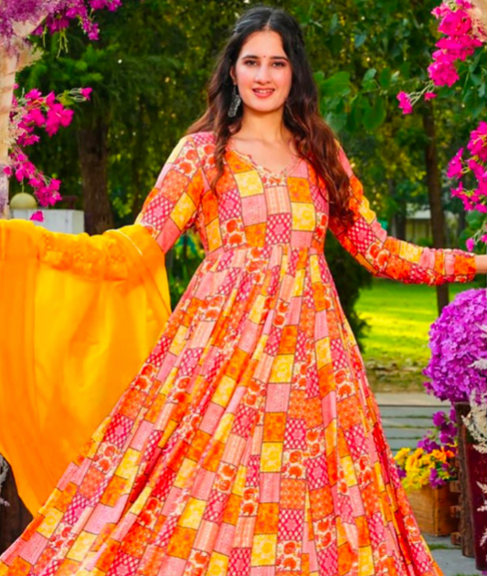 Price dropMatrut | Shayara Orange Multicolor Gown